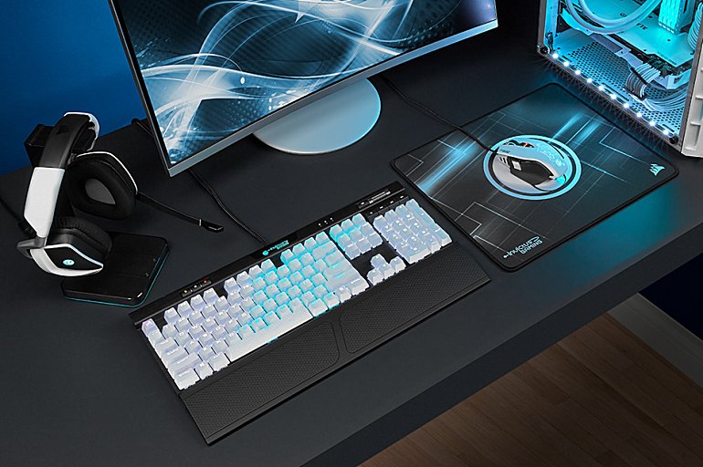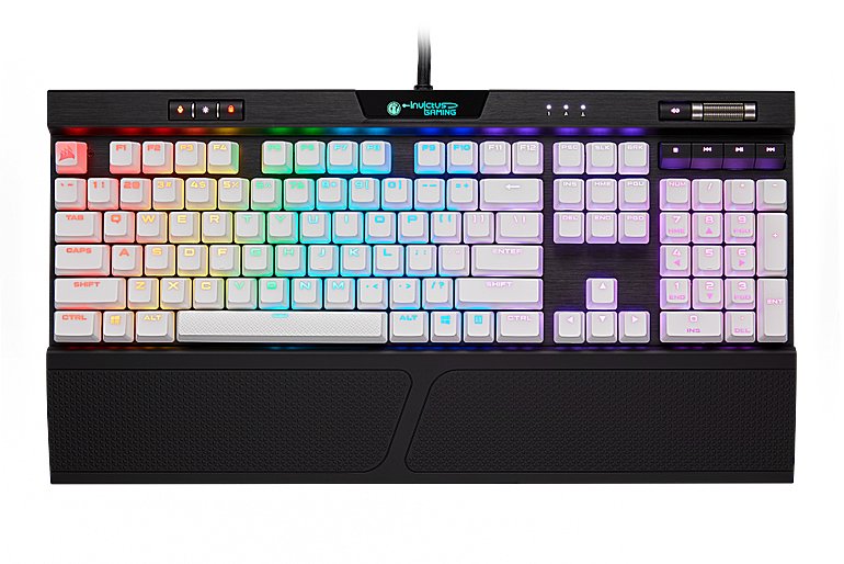 K70 RGB MK.2Rapidfire iG系列是一款轻质铝合金框架机械键盘,它拥有Cheery MX 银轴,和PBT双色透光键。同时它的每个按键都有背光,甚至连iG战队LOGO也可以自由定制色彩!K70 RGB MK.2Rapidfire iG系列还拥有一个可拆卸手托,为玩家提供舒适体验,并且在触手可及的距离配置了多媒体控制按键,方便快捷。