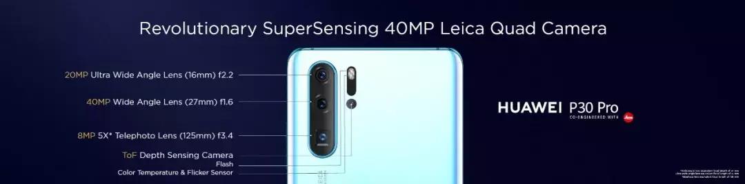 此外,P30 Pro 还借助潜望镜结构实现了更强的变焦拍摄能力,其中P30 Pro将支持5倍光学变焦、10倍混合变焦以及最高50倍的数字变焦能力,P30也支持3 倍光学变焦、5倍混合变焦和最高30倍的数字变焦。