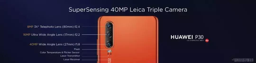 首先是标准版华为P30,它这次配备了4000万像素的广角主镜头,其次是1600万像素的超广角和800万像素的长焦组合,算是加上了徕卡标的标准三摄组合。