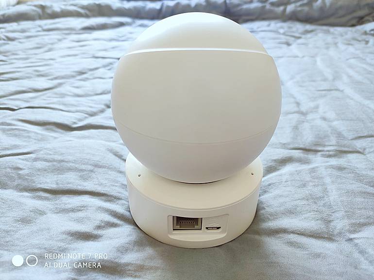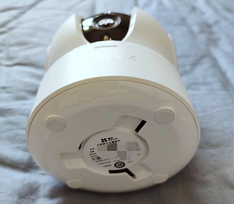 众测名单下来的第二天,蛋黄星球的编辑就把产品邮寄出去了,包装完好,还非常有心的贴了蛋黄星球标贴,蛋黄星球是电脑报旗下兴趣社区,编辑们都挺好,选择众测的产品也是非常热门而有眼光的。打开快递包装,映入眼帘的就是萤石摄像机的包装盒了,包装盒下面还有总编的评测要求纸质版。萤石C6C的包装主体颜色是白色,非常简洁漂亮,包装上有产品名称,有产品特性介绍。打开包装,就是摄像机主体,很大,摸着很有质感,摄像机上半部分主要是镜头和2颗红外灯,如果把摄像头向上转到后面,就是插SD卡和复位按钮的地方。在下半部分就是底座部分,上面有3个孔,应该是麦克风,用来360度智能定位声源,这个智能功能在后面将会讲到。在底座的背面,有网线插口和电源插口,这款摄像机可以用WIFI连接,也可以用网线连接,这样网络更加稳定。在底座的底部,有4个脚垫,不会磨伤底座,也可以防滑,底座还有3个孔,用来卡住固定底座,这样可以倒装在屋顶上,只要在设置里翻转画面即可。包装盒里,摄像机下面是说明书,说明书上有序列号二维码,和机身上是一样的,用来在APP上添加摄像机扫码。最下面就是配件盒了,里面有固定底座、螺丝钉、电源线、电源适配器。