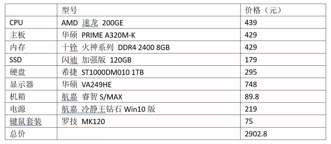 最近英特尔处理器价格全线暴涨,就连办公用户经常选择的奔腾处理器都涨了好百元,简直毫无性价比可言了。与英特尔产品的高价相比,AMD最近推出的速龙 200GE,在提供不错性能的同时,不到450元的价格很有竞争力。所以本期站长给大家带来一套基于速龙 200GE的办公及配置,加显示器不到3000元即可拿下,性价比还是很不错的。