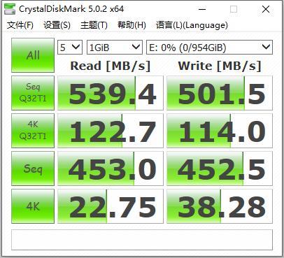 在CDM测试中,WD My Passport SSD连续读取速度达到539.4MB/s,连续写入速度达到501.5MB/s,4K连续读取速度为22.75MB/s,4K连续写入速度达到38.28MB/s。不管是拷贝大容量单个文件,还是传输大量零散小文件,这样的传输速度都不会逊色。