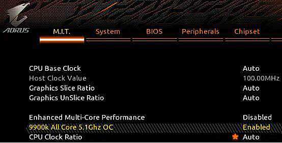 BIOS中有一项“9900K ALL Core 5.1 GHz OC”,默认就是开启状态