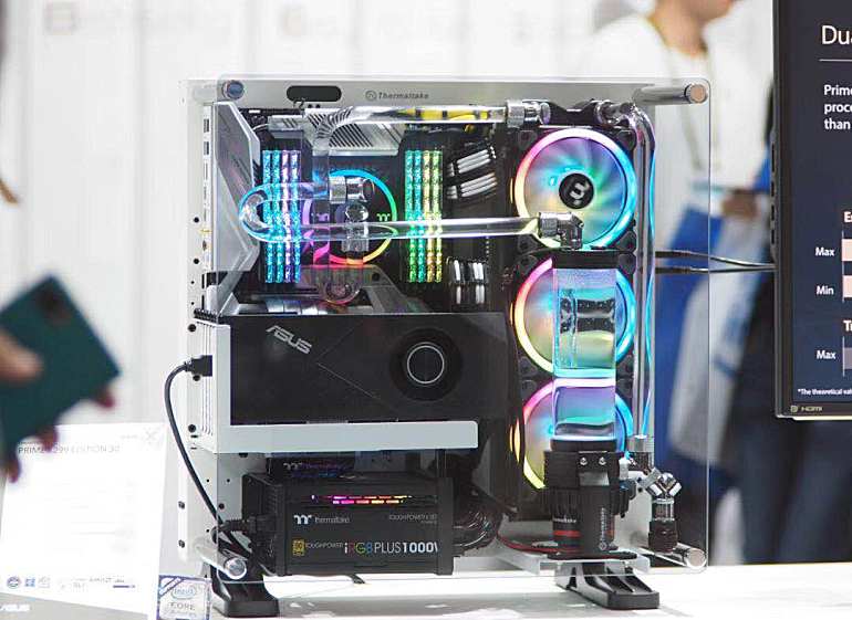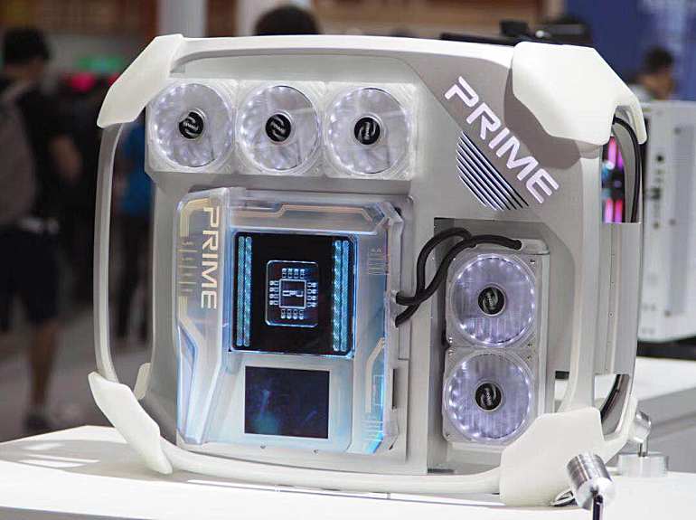 华硕本次还展示了ASUS PRIME Utopia概念主板,为玩家展示了未来高端主板的理想化形态,其采用了全新的散热解决方案,最大亮点在于其将PCI-E插槽放置在了主板背后,可以腾出更多前端空间容纳扩展卡和M.2 SSD。