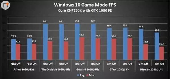 PCGamer使用Intel Core i7-7700K、i3-7350K,8G*2内存以及GeForce GTX 1080 Founder's Edition/Radeon R9 Fury、GeForce GTX 1050 Ti等显卡搭建了平台,对多款游戏进行测试,分别记录游戏模式和非游戏模式下的成绩。