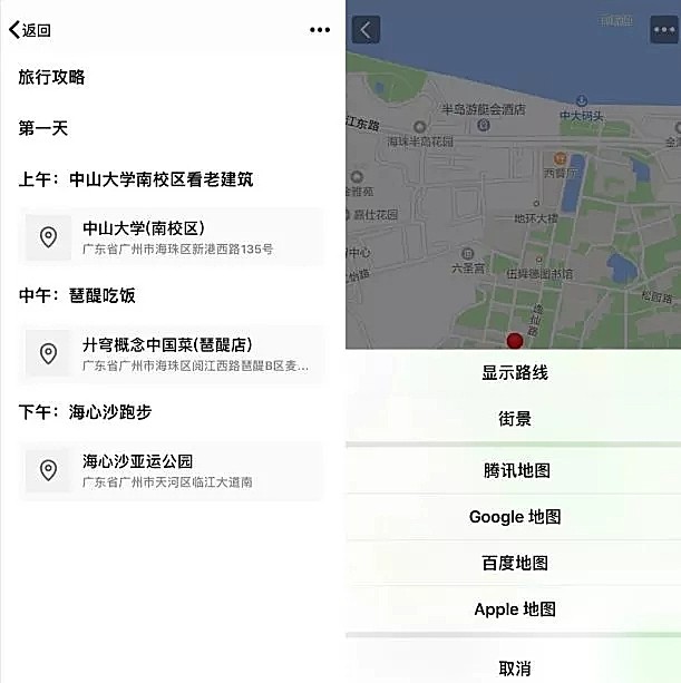 在制定出行计划或者旅行攻略时,最有效的方法就是直接插入地理位置。很多时候,我们只能加个地图截图,在上面做标注。等到到达目的地后,再用软件来导航具体位置,十分麻烦。现在我们可以在微信笔记中快速制定旅游攻略了,先用文字写好旅游计划,然后在每个游玩景点下插入对应位置,出发当天,我们直接翻看笔记,点击位置并选择导航到该位置,微信即会自动跳转到地图软件进行导航。