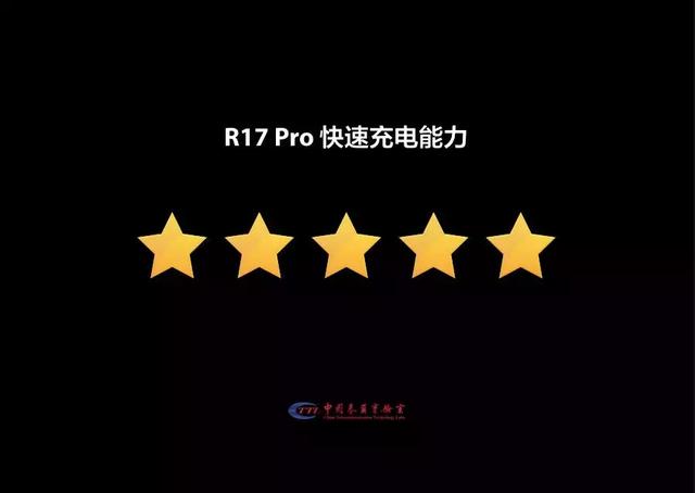值得一提的是,R17 Pro还在快充速度、安全性、充电温度、绿色高效性等充电综合素质的评判中,成为首个获得泰尔实验室五星认证的移动终端。