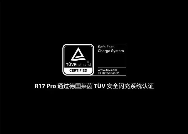 同时,继Find X超级闪充版后,搭载SuperVOOC超级闪充技术的OPPO R17 Pro首次通过德国莱茵实验室严格安全测试,包括远超业界要求的1000次循环测试、超过30项严苛要求的系统级测试、600次独立快充快放电池寿命测试,以及充电状态下充电端子10000次热插拔测试,全方位捍卫手机充电体验的安全可靠。