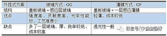 图3:玻璃方式的外挂触控技术GG(左)与薄膜方式的外挂触控技术GF(右)