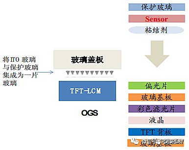 对于玻璃方式,还可以将ITO玻璃与玻璃盖板融为一体,集成为一片玻璃,直接将触控传感器置于该片玻璃之上,该方案也称为“单片玻璃解决方案”-OGS。