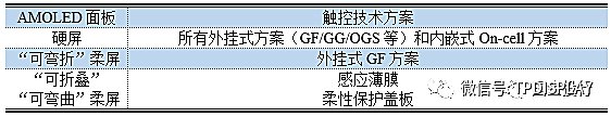 表2、AMOLED硬屏与柔屏的触控技术方案比较