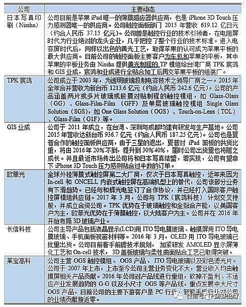 受AMOLED柔屏触控薄膜技术影响的触控厂商