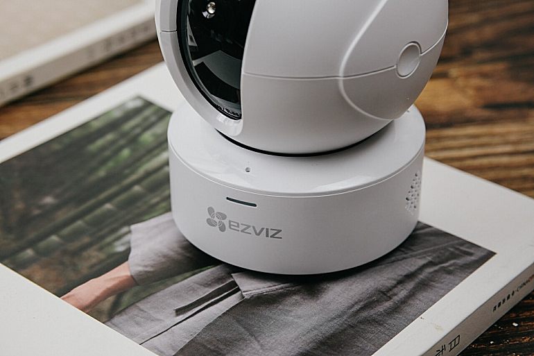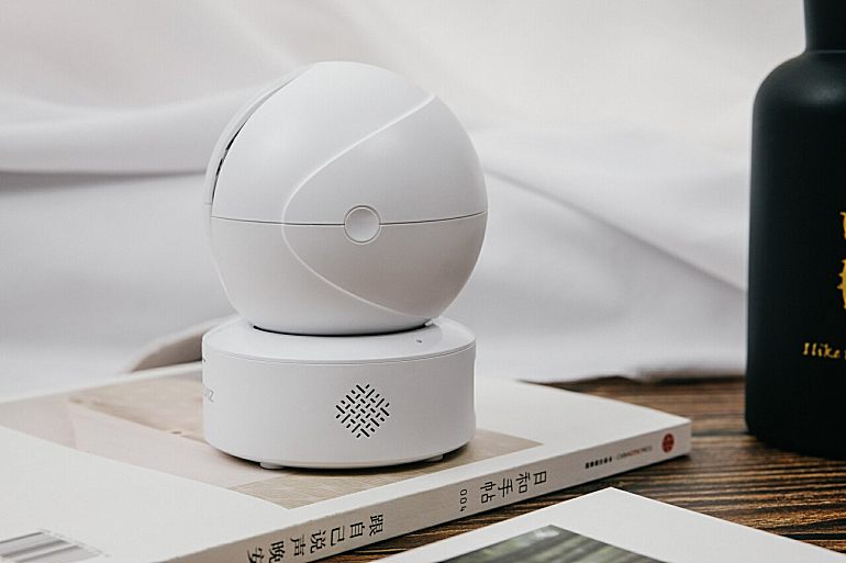 ▲萤石C6C的外观设计是比较常见的球形云台外形,云台部分可以做360°转动无死角,它采用新型电机技术突破了传统云台摄像机旋转角度限制,可以实现垂直转动角度105°(垂直向上90°,垂直向下15°),以前我朋友的店内需要安装监控摄像机,当时并没有可以360°转动的云台出现,最后因为有死角无法监控到,而不得不选择安装2个监控摄像机才能全覆盖,所以理论上360°转动云台只要在监控范围靠中心位置安置,就可以无死角全范围监控。