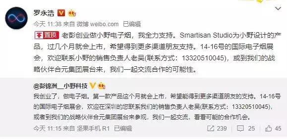 今天中午,前锤子科技总裁彭锦洲正式宣布,自己出来创业了,并且方向是电子烟,还将参加最近的国际电子烟展会,随后不久,罗永浩就确认了这一消息,并表示全力支持。