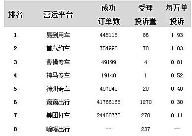 11月15日,据上海交通披露,2018年三季度,上海市交通委信访、热线渠道受理出租汽车行业相关诉求21920件,其中涉及网约车平台2470件,占比为11.27%。每万单投诉前五位的网约车平台分别为易到用车、首汽约车、曹操专车、神马专车、神州专车。