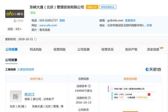 官方回应ofo法人变更:正常人事变动