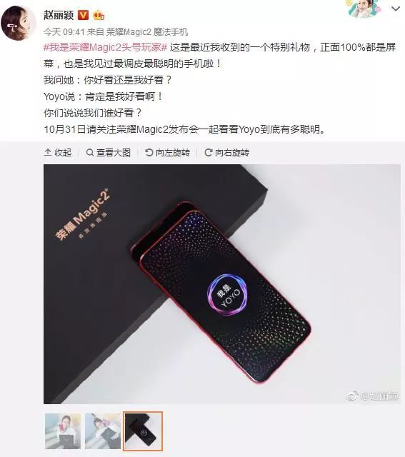 赵丽颖晒出荣耀Magic 2真机图:正面全是屏
