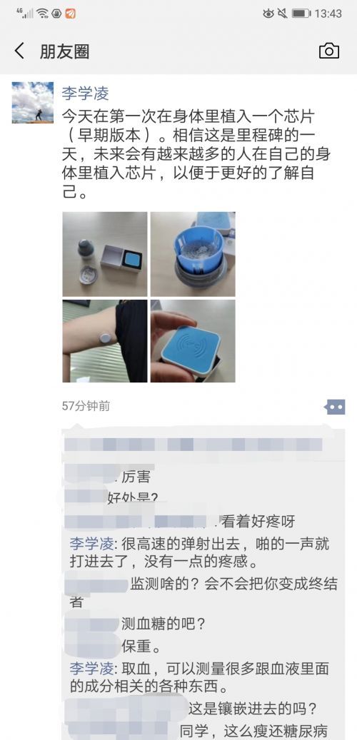 今日下午,广州欢聚时代科技有限公司(YY)联合创始人、董事长兼CEO李学凌在朋友圈晒出身体植入芯片的经历,并表示这样可以“更好地了解自己”。