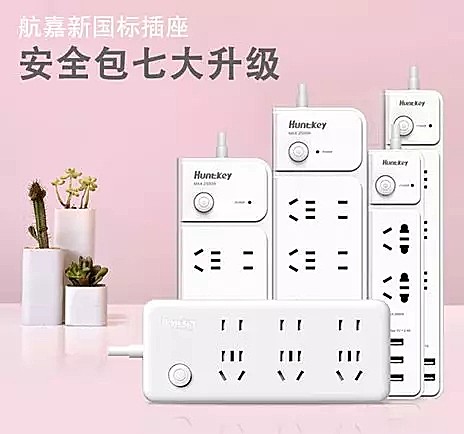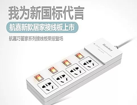 航嘉目前推出有多款新国标安全插座,产品全面符符合国家3C认证,新国标组合插孔,儿童安全保护门,防触电防异物,一体式铜套设计无焊点,更安全,外壳采用绝缘材料,高阻燃,高耐热。其中航嘉SSH608采用了时尚美观的流畅线条机身设计;航嘉SST307更额外配备了四个5V/3.1A的USB充电接口,方便为手机和数码设备充电。航嘉SSH608航嘉小新SV207配备了3个5V/2.4A充电接口,外壳更采用拉丝工艺,金属质感,简洁时尚。