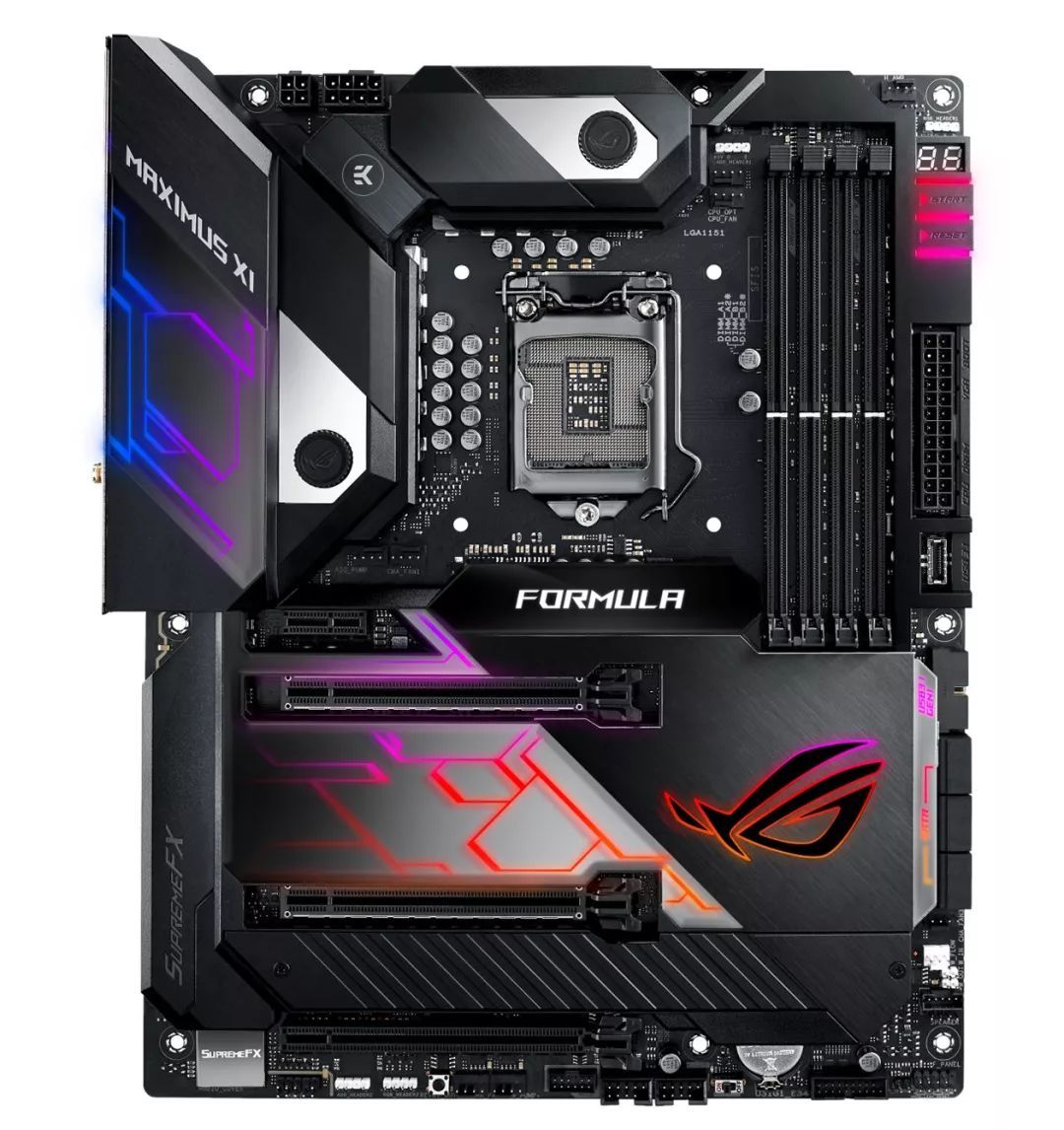 华硕玩家国度旗下的ROG MAXIMUS系列一直是Intel芯片组主板的标杆级产品,最新基于Z390芯片组的ROG MAXIMUS XI FORMULA更是以超豪华用料与做工,一出场就惊艳四座。由于第九代酷睿旗舰i9 9900K核心数量和频率都相对上代旗舰大幅提升,因此对于供电的需求也变得更高,ROG MAXIMUS XI FORMULA在这方面自然也进行了强化,不但配备了强悍的数字供电电路,还配备了CrossChill EKⅢ混合水冷模块,方便发烧级玩家升级高端分体式水冷。此外,作为Z390豪华旗舰,ROG MAXIMUS XI FORMULA不但提供了智能超频功能(可智能识别处理器体质和超频参数,自动挖掘超频潜力,堪称选U神技),还通过OPTIMEM II内存优化技术稳定支持DDR4 4400MHz+高频内存,提供无与伦比的强悍性能。当然,ROG MAXIMUS XI FORMULA还具备多项华硕独家黑科技,例如板载第二代Live Dash OLED屏幕,不但可以显示各种系统参数,还能自定义显示内容,配合AURA SYNC神光同步打造极具个性化的旗舰级MOD主机;ROG全系主板标配一体式I/O面板,既方便安装,防护能力和档次感也更强;Safeslot强化显卡插槽,应付超重显卡无压力。总而言之,ROG MAXIMUS XI FORMULA堪称目前做工、功能与性能都达到旗舰水平的Z390主板,是酷睿i9 9900K的极品搭档!