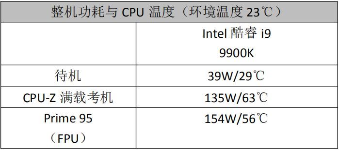 我们使用Intel官方的XTU软件来监测酷睿i9 9900K在考机过程中的频率变化和温度变化。从实测情况来看,待机时酷睿i9 9900K的功耗表现相当不错,整机功耗仅有39W。使用CPU-Z满载考机1小时温度在63℃左右,而用Prime95 FPU考机仅有56℃度左右,用XTU考机的情况与CPU-Z一致,就没有再重复列出了。为何用Prime95 FPU考机温度比用CPU-Z考机更低,但功耗却高出19W?我们通过XTU监测发现用Prime95 FPU考机很容易触发电流墙限制,全核心频率会陡降到3.9GHz,因此温度也随之下降,但因为考机使用的计算方式不同,Prime95 FPU造成的功耗反而更高。但不管怎么说,酷睿i9 9900K的实测温度并没有之前网上流传的高达100℃那么夸张,钎焊的作用还是很明显的,60℃出头的满载温度也在正常范围内,比酷睿i7 8700K还是好不少。