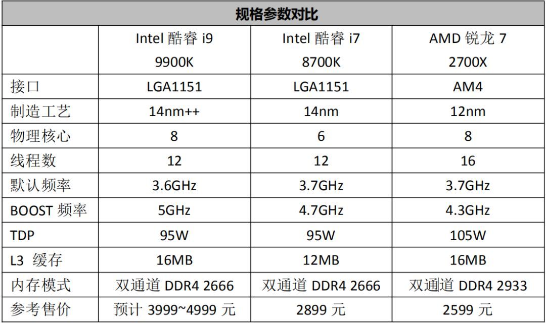 就目前情况来看,在消费级平台上Intel和AMD都有了8核心16线程的产品,但由于Intel处理器在频率方面的优势,酷睿i9 9900K的综合性能预计会好于锐龙7 2700X,而以Intel定价的习惯来看,更高的性能必然会带来更高的定价,而且就目前酷睿i7 8700K价格大幅走高的情况来看,酷睿i9 9900K的国行售价必定会相当惊人。