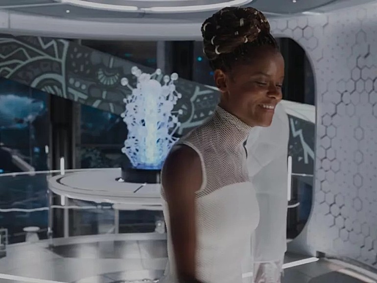 全息图在整个电影中都可以看到。Shuri的实验室里拥有几个全息显示器,还有通话时直接3D全息图,拥有和FaceTime一样的清晰画质,并且能跟随使用者一起移动。