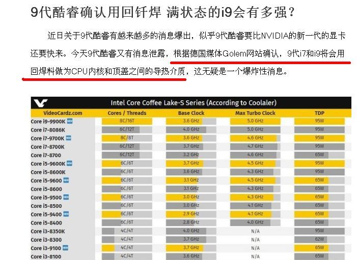 关于9代酷睿钎焊散热的传闻