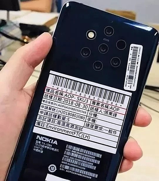 诺基亚则更激进,准备推出五摄手机。早在今年年初,富士康员工就曾曝光一张Nokia 9 的设计图,透露该机将在2019年2月发布搭载全球首款5颗摄像头。此后FIH服务器上还出现了 Nokia9 五摄手机的最新数据,同时也曝光了这款手机的代号,系统等信息。当然最显眼的莫过于其背面排列的五颗摄像头了。不过我们可以看到的是7个小圆圈,除了一个闪关灯外还有一个传感器。