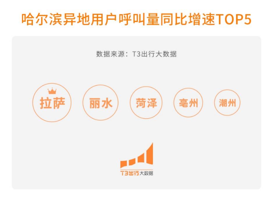 值得一提的是,赴哈尔滨旅游的外地游客里,、丽水、菏泽、毫州、潮州是打车出行需求增速最快的5大城市,同比增速超过720%。