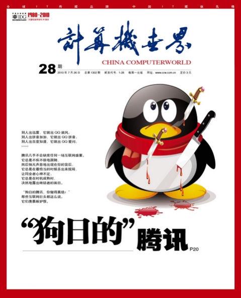 腾讯靠着“复制成功”让自己变大变强,那些被腾讯“抄死”的公司自然是死不瞑目。2010年7月,《计算机世界》刊登了一篇题为《“狗日的”腾讯》封面文章,将腾讯比作“互联网公敌”,刀刀见血地谴责腾讯,在当时引起非常大的反响。