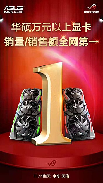 双十一期间,各方厂商逐鹿狂欢战场,RTX™ 20系列显卡也终于浮出水面逐步上市。游戏玩家们为了在这个寒冷的季节里,能够爽玩游戏大作,纷纷入手RTX™ 20系显卡,双十一当天,华硕万元以上显卡销量/销售额全网第一!