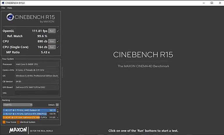 在CPU-Z的处理器测试中,酷睿i5-9400F的单核心得分为465.5分,多核心得分为2635分,基本上打平了酷睿i7-7700K,性能表现比较不错。在CineBench R15测试中,酷睿i5-9400F多线程得分为890CB,单线程得分为164CB,是主流甜品级水准。