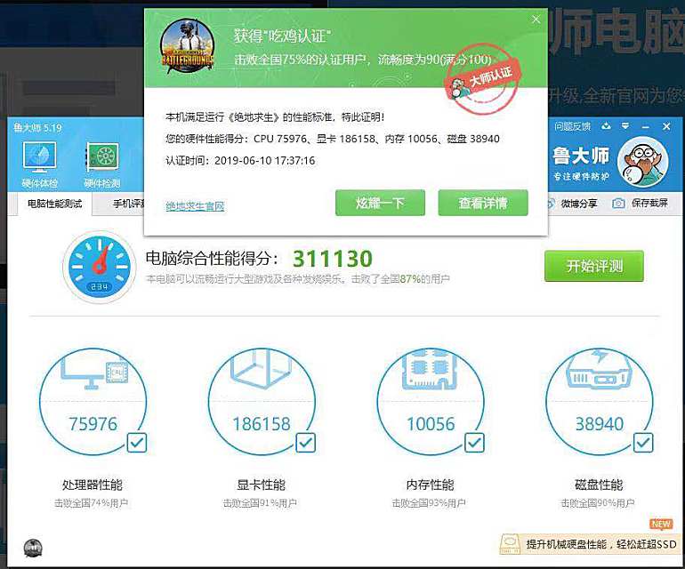 鲁大师的整机测试可以给玩家最直接的性能判断,iGame Sigma M500获得了311130的总分,鲁大师评价为能够流畅运行大型游戏和各种发烧娱乐。