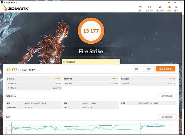 在针对DX12的3DMARK TimeSpy测试中,该主机的整体得分为5781,显卡得分为6178,在针对DX111080P分辨率的FireStrike中整体得分为13177,显卡得分15483,在针对DX112K分辨率的FireStrikeExtreme中整体得分为6764,显卡得分为7136,整机性能发挥稳定,是目前主流配置的得分。
