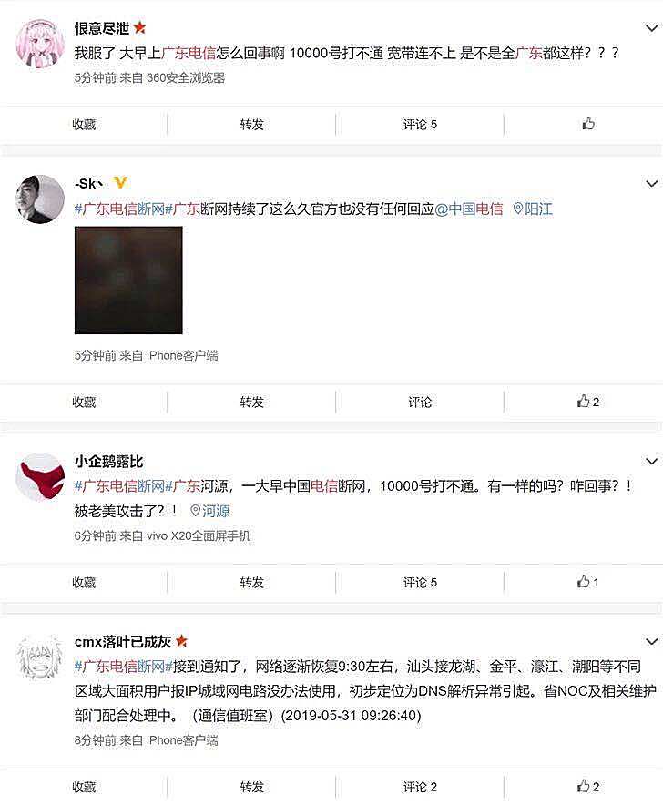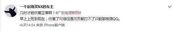 今天下午,有广东的网友表示,虽然网络已经修复,但是目前只能聊QQ微信,网页还是打不开。