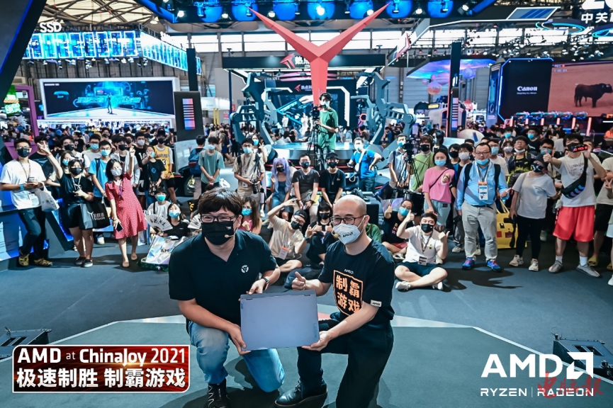 图:AMD大中华区市场营销副总裁纪朝晖与联想消费电脑游戏事业部产品及研发总监朱怀军一起发布联想拯救者R9000X 2021R游戏本