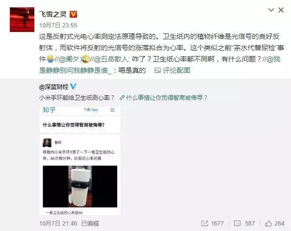 这是日前知乎上的一个话题,一位知乎用户在回答中表示:“用我的小米手环3测了一下一卷卫生纸的心率,86次每分钟,比我的心率还高,你怕不是怀了我的骨肉吧??”。