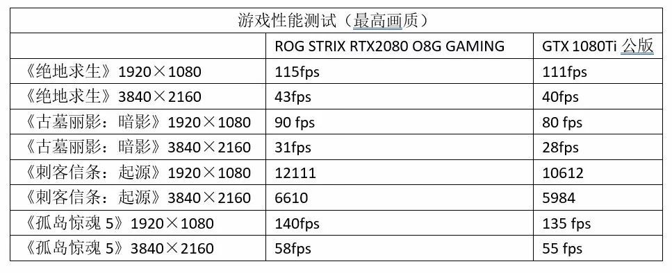 此外,与我们同时期测试过的RTX 2080相比,ROG STRIX RTX2080 O8G GAMING在游戏中的表现是超过公版RTX 2080的,要知道市面上不少非公版的性能是不如公版的,不愧是性能最强的RTX 2080。