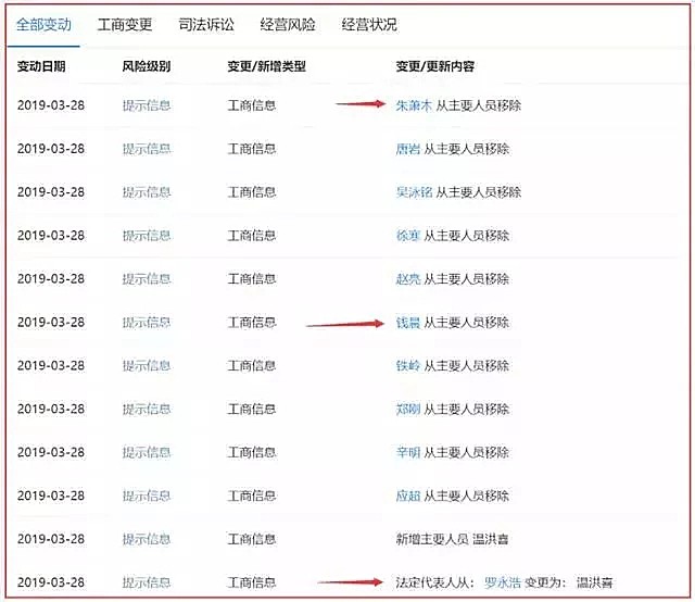 根据企查查官网数据显示,锤子软件(北京)有限公司发生工商信息变更,法定代表人由罗永浩变为温洪喜,前锤子科技CTO钱晨、陌陌CEO唐岩以及朱萧木、赵亮、应超、辛明、铁岭、郑刚、徐寒、吴泳铭10位高管从主要人员中移除。