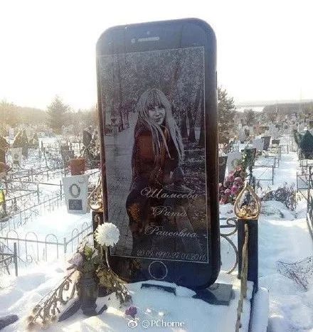 最近,俄罗斯乌法市出现一座奇特的墓碑,引发网友关注。据媒体报道,墓碑里面埋葬这一名因为车祸去世的年轻女生。这座墓碑采用了iPhone 6的形状,侧面设计与真手机相差无几,从按键到比例模仿得像模像样,令人叹为观止。