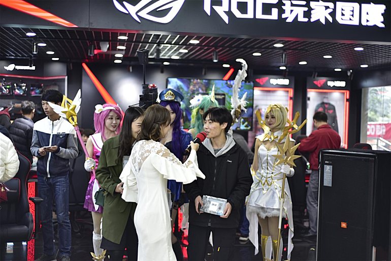 现场还有专业coser以英雄联盟游戏角色为主题进行精彩演出和互动,超多华硕精彩好礼相送,打造了石桥铺商圈一次全民电竞盛宴。
