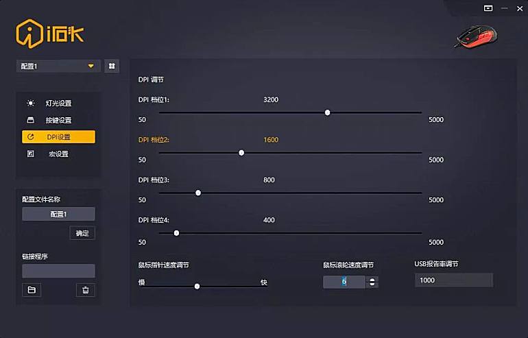 玩家可在驱动中对四挡DPI按键进行自定义调节