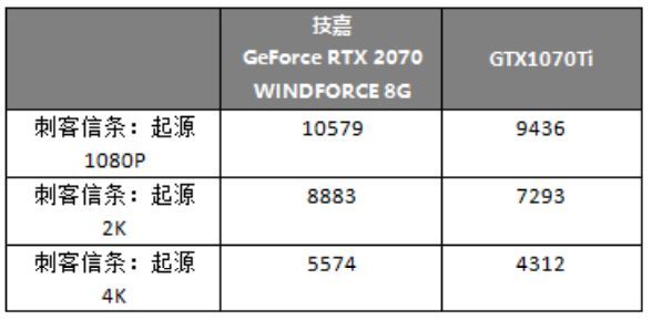 《刺客信条:起源》的成绩也能看出RTX2070明显高出GTX1070Ti一个定位级别,特别是在4K分辨率下,差距相当明显。