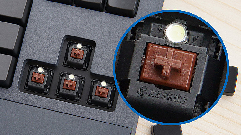▲ikbc一如既往坚持使用樱桃原厂轴,樱桃轴是所有机械键盘玩家的信仰,有着至高无上的地位,品质和耐用度让人心里非常踏实。笔者这块E401是茶轴版本,对于刚入门机械键盘但又不知道选什么轴的小伙伴,强烈建议你找身边的朋友,或者线下店体验一下各个轴之间的手感和区别,并不是网上说的哪个轴就一定适合做什么,多说无益,使用感受因人而异。