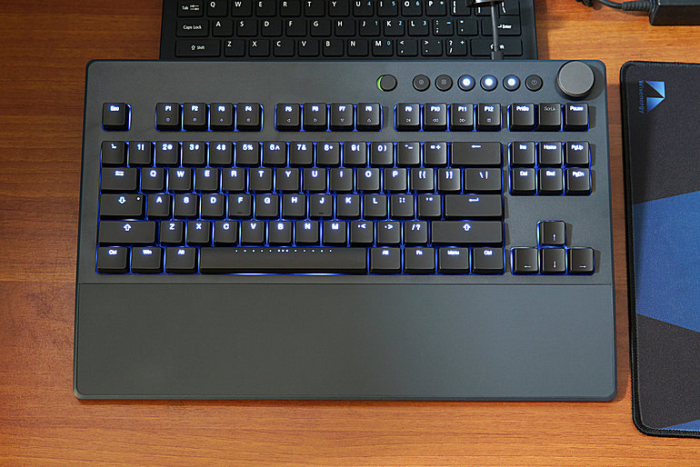 ▲Table E401是87键设计,87键和108键的差异就在于右侧的数字键盘,游戏玩家会倾向于选择87键,能为鼠标提供更大的活动空间,同时也避免了键鼠同时操作时,两手的展开空间过大而造成使用疲劳。而对于经常会使用到数字键盘的用户来说,比如敲代码、写文案、金融工作等等,108键版本当然是首选。