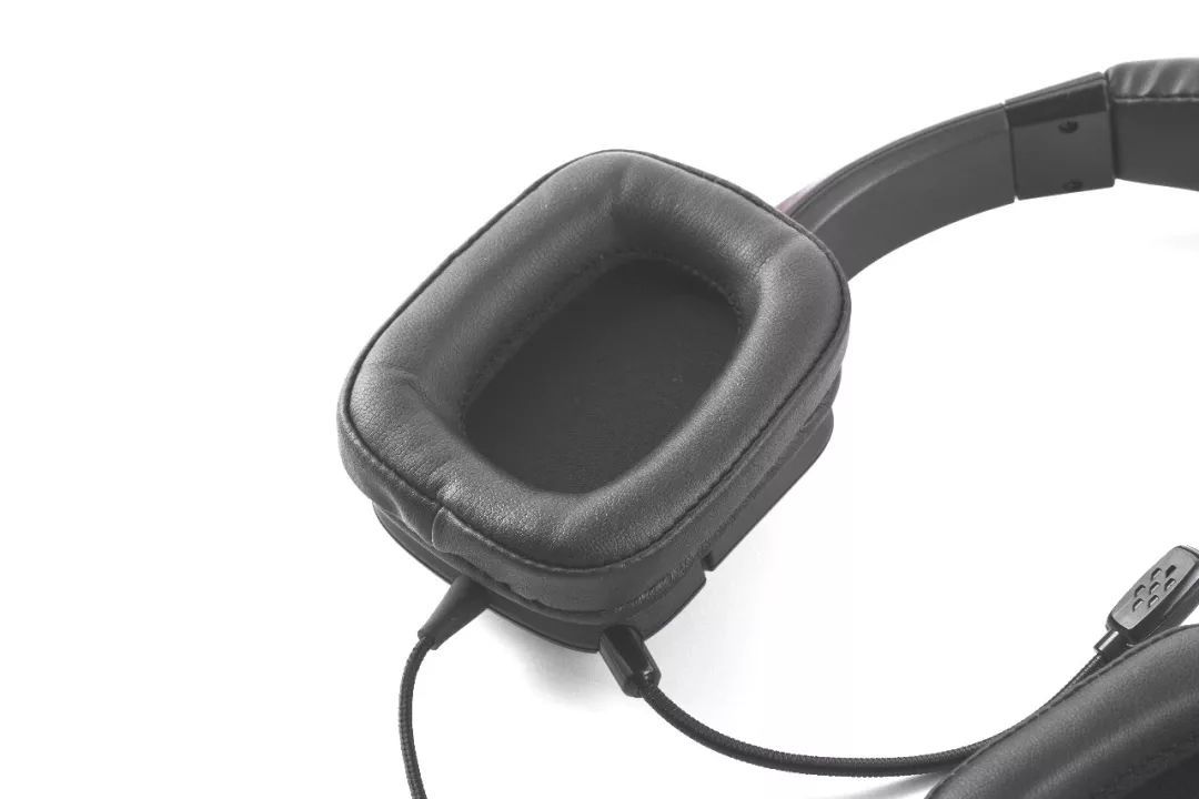 在用料方面,头梁和耳罩部分为游戏耳机上常用的人造蛋白皮包裹的海面材质,触感细腻、柔软不会有压头、挤压的感觉。耳罩为少见的方形设计,尺寸不算大但刚好可以把笔者的耳朵包裹住,长时间使用后耳朵的疲劳感并不明显。TRITTON Kama+在佩戴体验上做得确实不错,非常的舒适。
