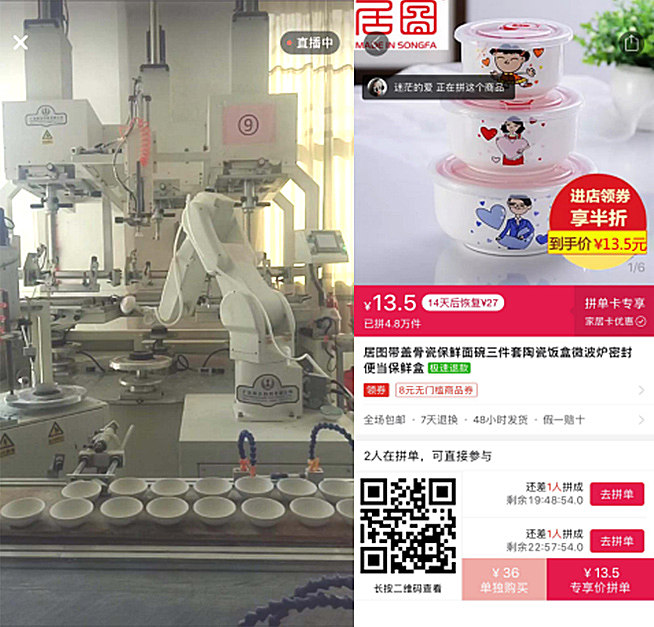 ▲12.18日,松发陶瓷通过拼多多“新品牌可视化平台”,直播自动化生产线。