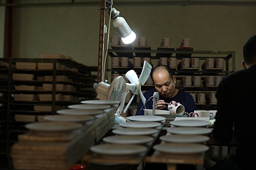 广东潮州枫溪区的一天,是在一袋袋高岭土中开始的。在陶瓷工艺师的手中,这些白色粘土,经由一道道工序的淬炼,最终变为精美的瓷器。