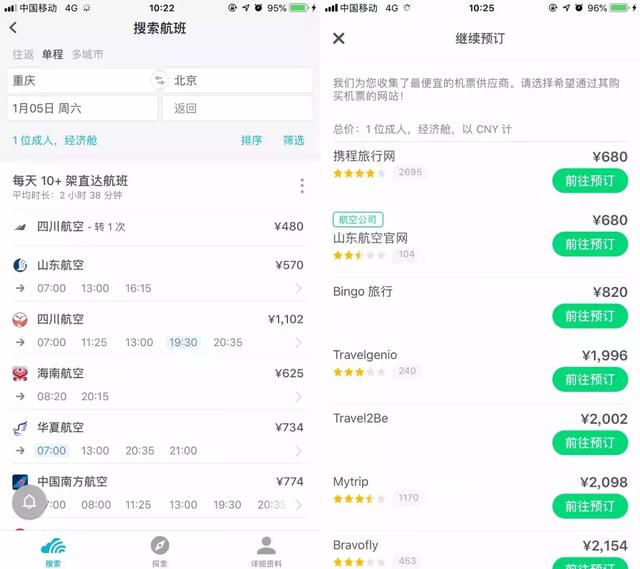 这样统一比价之后,就更容易选择了。而且这些比价服务大多会帮你自动跳转到对应的购票平台之后让你自行下单,安全性也比较让人放心。